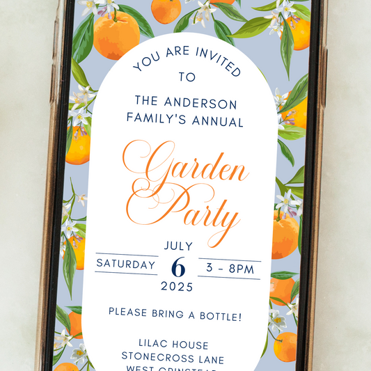 Editable Garden Party Invitation – Orange Grove Citrus Design