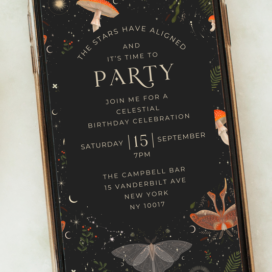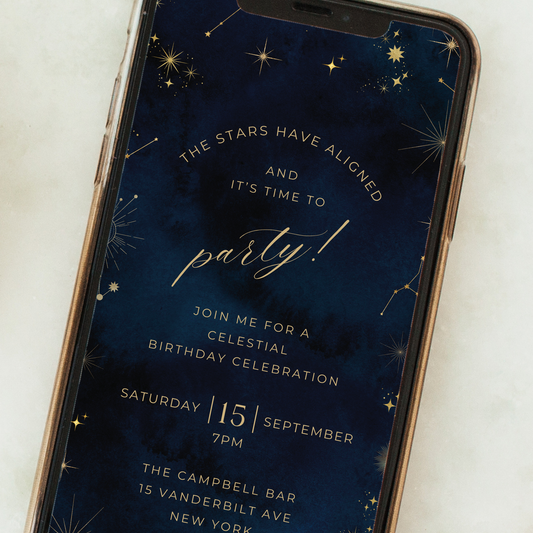 Editable Celestial Birthday Invite – Elegant Cosmic Theme