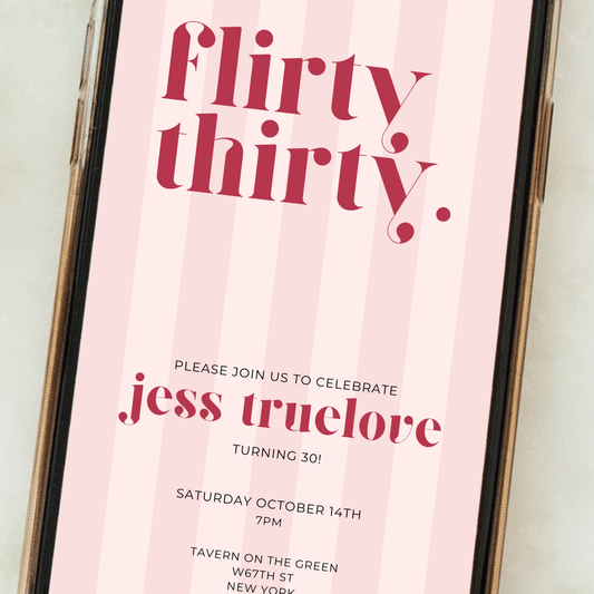 Editable 30th Birthday Invitation – Pink Flirty Thirty Design
