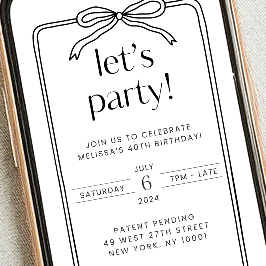 Editable Stylish Birthday Invitation – Black & White Bow Design