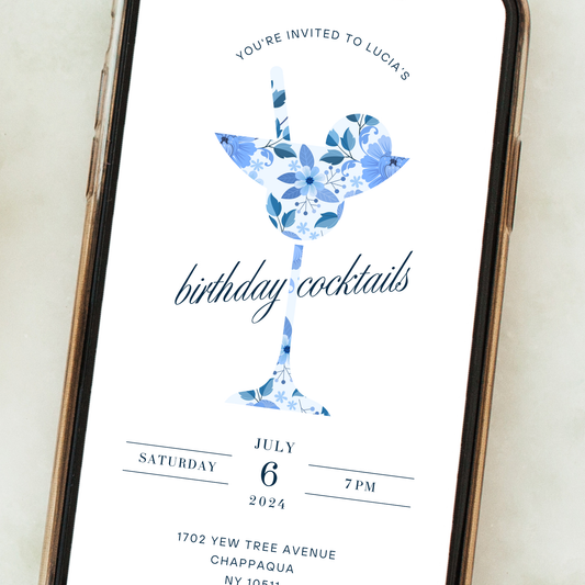 Editable Cocktail Party Birthday Invitation – Floral Martini Design