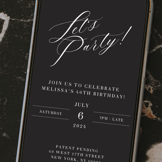 Editable Birthday Invitation – Black & White Let’s Party Design