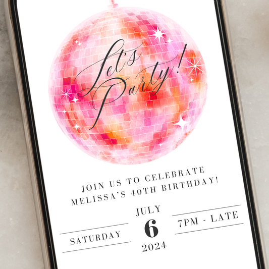 Editable Disco Birthday Invitation - Let's Party!