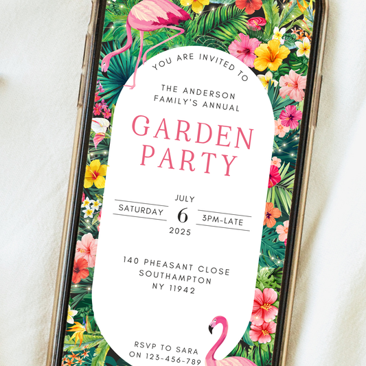 Editable Garden Party Invitation – Tropical Flamingo Theme
